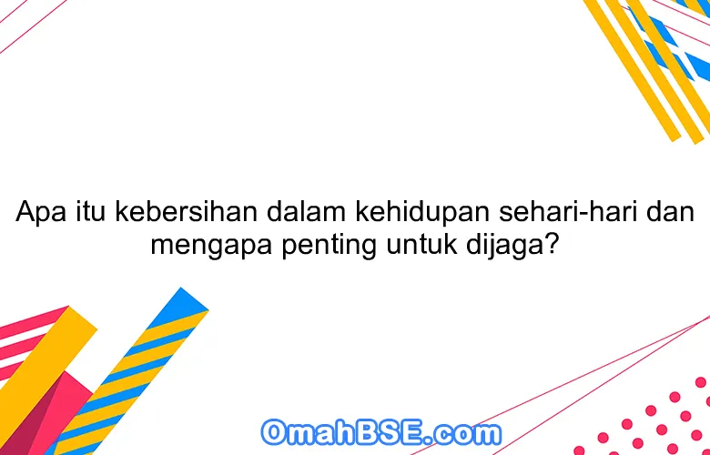 Kebersihan adalah keadaan bebas dari kotoran, bau tidak sedap, atau kontaminan lainnya yang bisa berdampak negatif pada kesehatan dan kenyamanan. Dalam kehidupan sehari-hari, kebersihan sangat penting untuk dijaga karena beberapa alasan sebagai berikut: