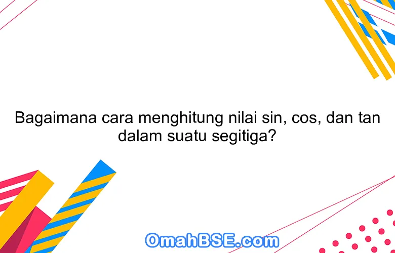 Anda mungkin pernah mendengar tentang fungsi trigonometri seperti sin, cos, dan tan dalam matematika. Namun, apakah Anda tahu bagaimana cara menghitung nilai-nilai ini dalam suatu segitiga? Dalam artikel ini, kita akan melihat bagaimana melakukan perhitungan trigonometri yang tepat untuk mendapatkan nilai sin, cos, dan tan yang akurat dalam segitiga.