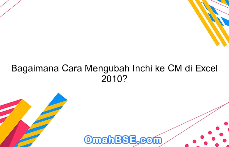 Untuk mengubah Inchi ke CM di Excel 2010, Anda dapat melakukan beberapa langkah berikut: