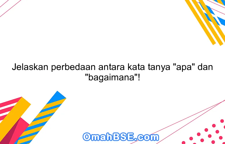 Dalam bahasa Indonesia, kata tanya “apa” digunakan untuk menanyakan identitas, jenis, atau bentuk suatu objek atau keadaan, dan jawaban yang diberikan akan memberikan informasi tentang hal tersebut. Sementara itu, kata tanya “bagaimana” digunakan untuk menanyakan cara atau kondisi suatu hal terjadi, dan jawaban yang diberikan akan memberikan penjelasan mengenai proses, metode, atau kondisi tersebut.